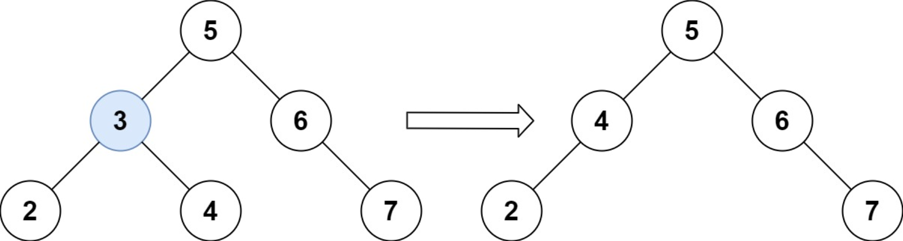 Input: root = [5, 3, 6, 2, 4, null, 7], key = 3