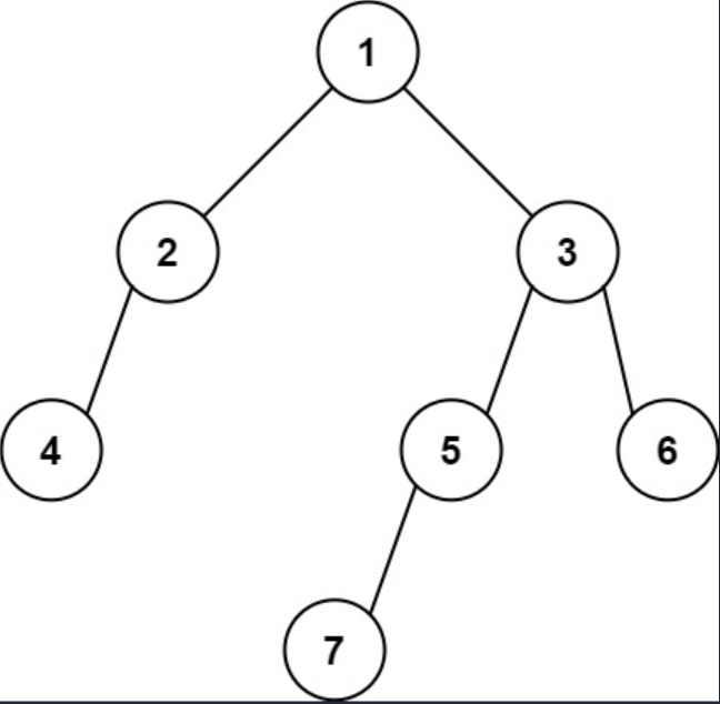 Input: root = [1, 2, 3, 4, null, 5, 6, null, null, 7]
