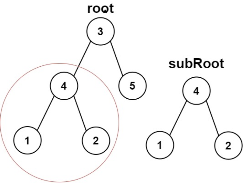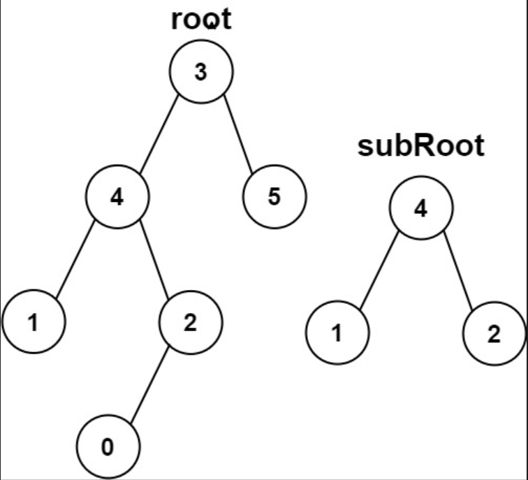 Input: root = [3, 4, 5, 1, 2], subRoot = [4, 1, 2]