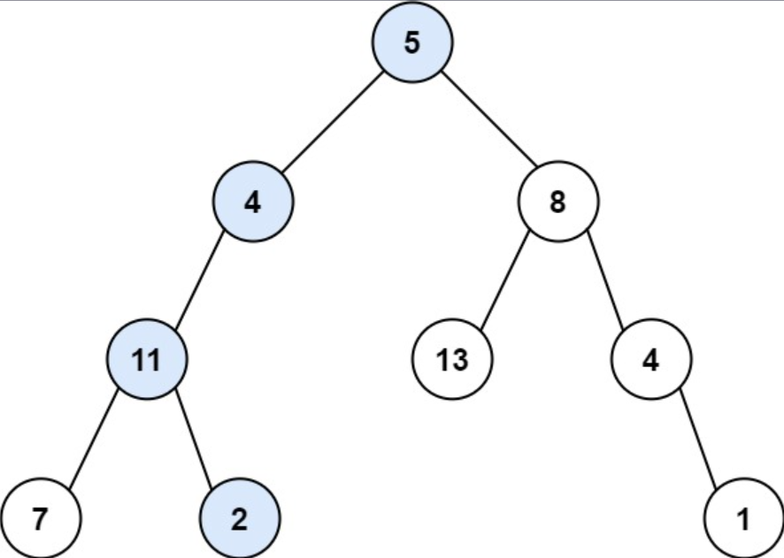 输入: root = [5, 4, 8, 11, null, 13, 4, 7, 2, null, null, null, 1], targetSum = 22