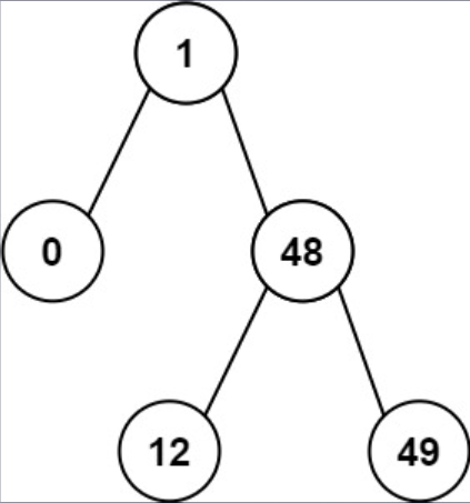 输入: root = [1, 0, 48, null, null, 12, 49]